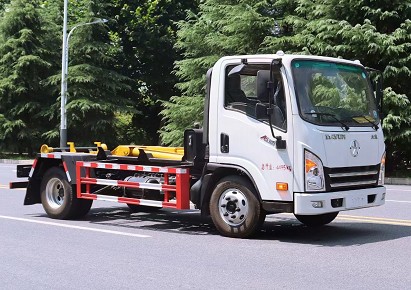 國六大運藍牌勾臂垃圾車_大運藍牌建筑垃圾運輸車
